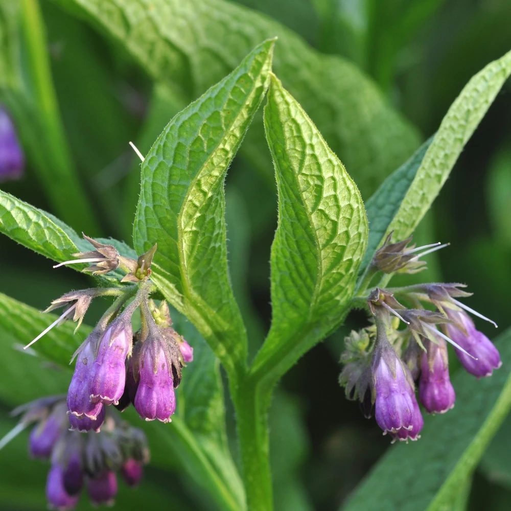 La consoude contient naturellement une grande quantité d'allantoïne dans sa racine, une molécule qui stimule la multiplication cellulaire, régénère l'épiderme et favorise la cicatrisation rapide des plaies.